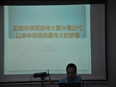 接着,游老师进一步分析了中国梦的本质是国家富强、民族振兴、人民幸福,为什么用中国梦来概括中华民族伟大复兴?他指出,中国梦把国家的追求、民族的向往、人民的期盼融为一体,体现了中华民族和中国人民的整体利益。并进一步指出,中国梦与世界各国人民的美好梦想想通。实现伟大梦想必须进行伟大斗争、建设伟大工程、推进伟大事业。