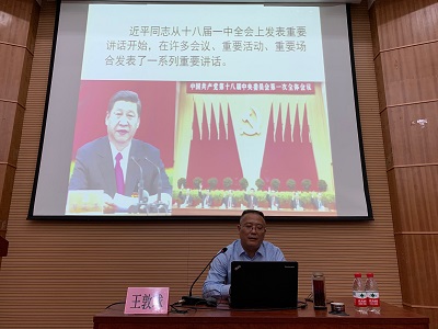 为贯彻党的“三会一课”指导思想,深入学习贯彻习近平新时代中国特色社会主义思想和十九大精神,2019年5月22日下午,学校党委常委、副校长王敦球同志应邀为黑料吃瓜