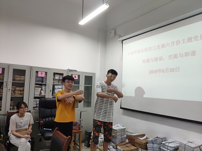 本科生三支部在雁山校区12415会议室举行了主题为“沟通与情谊,交流与和谐”的党日活动,此次党日活动由支部书记夏晴同志组织开展,本科生三支部全部在校20名党员同志参加。