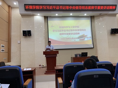 在雁山校区萃华楼一楼报告厅会议室组织学习习近平总书记等中央领导同志教师节重要讲话精神,学院全体教师参加学习,会议由姜子亮书记主持。