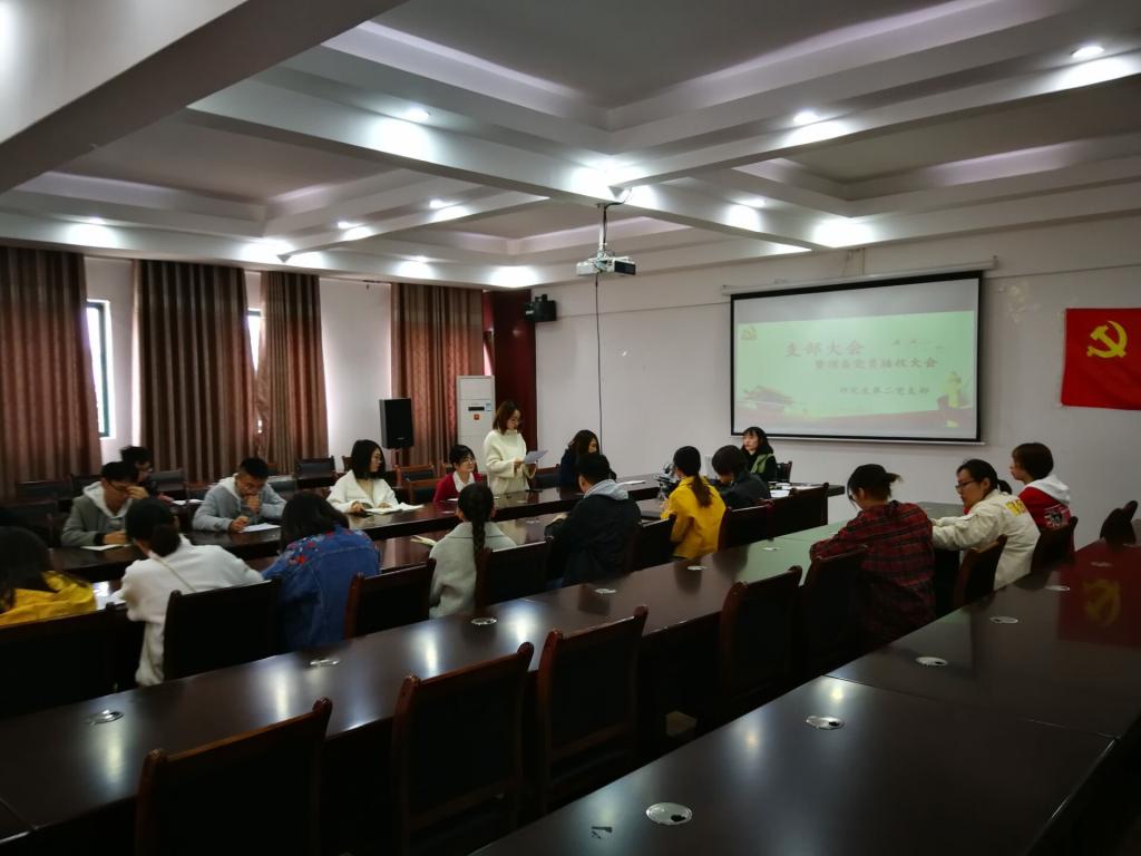 会议开始,党支部书记第一书记李楠老师宣读预备党员的相关事项;随后,发展对象依次就个人考察期的基本情况、入党动机、对党的认识和自身思想变化等向党组织汇报。每一位发展对象汇报结束后,其入党介绍人、与会其他党员对发展对象在考察期表现做出评价并提出可行性意见与建议。组织委员向支部报告发展对象的政审和公示情况。通过无记名投票和现场计票的方式,确定了4名同志发展成为预备党员的事宜。