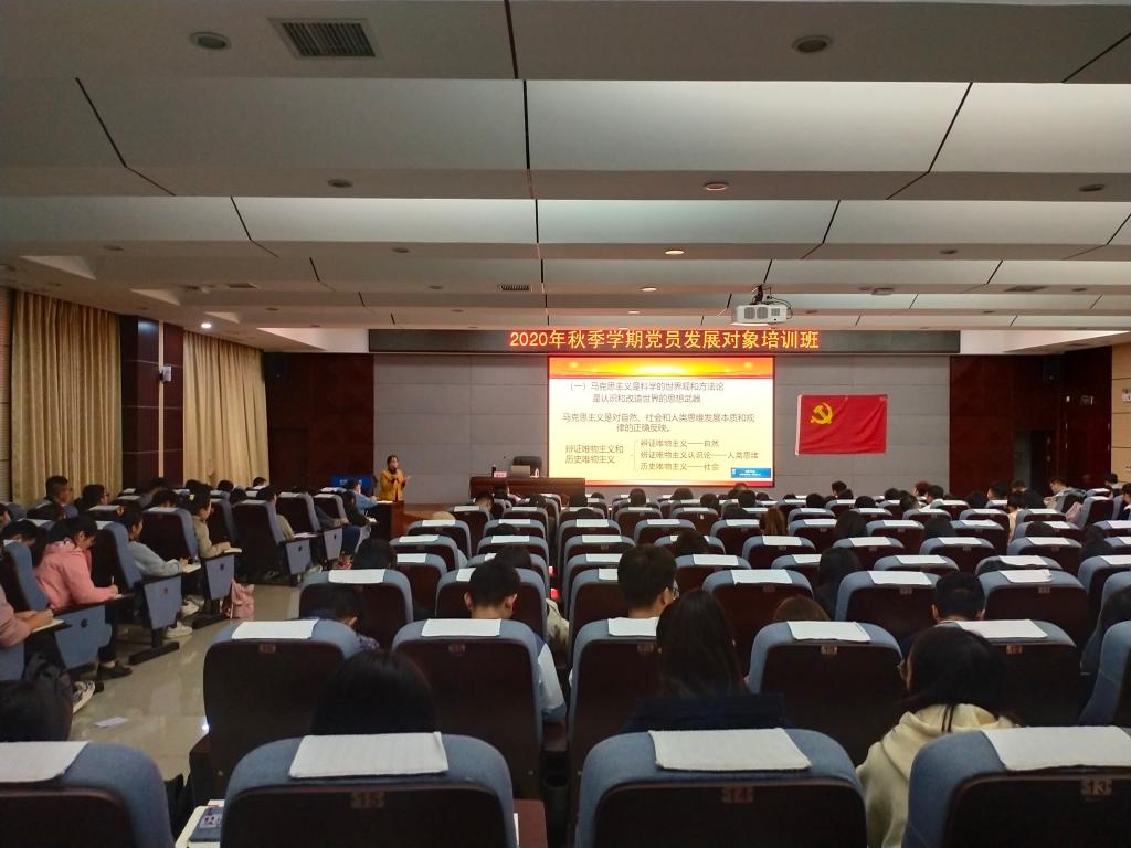 11月2日晚,在01501会议室,马克思主义学院谢年华老师为联合分党校2020年秋季学期党员发展对象培训班,做《中国共产党的指导思想》专题党课。