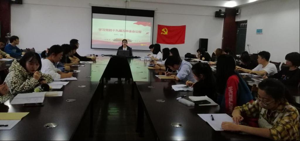 研究生二支部在雁山校区萃华楼12407会议室组织开展了关于《十九届五中全会精神》的党课学习。主要学习了《中国共产党第十九届中央委员会第五次全体会议公报 》、《 中共中央关于制定国民经济和社会发展第十四个五年规划和二〇三五年远景目标的建议》两份材料。支部书记王媛同志及支部全体党员同志参加会议,本次党课由支部书记王媛同志主持。