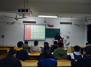 本科生第四党支部与雁山校区05311教室组织学习贯彻党的十九届五中全会精神,支部应到党员19名,实到党员17名,请假2名。