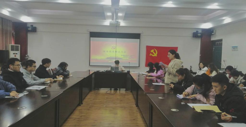 研究生二支部在雁山校区萃华楼12407会议室召开了支部预备党员转正会议。出席本次大会的有支部书记王媛、支部副书记董翼、各支委以及支部党员同志。本次大会讨论了关于李梦丽、孙容淋两名中共预备党员按期转正成为中共党员的事宜。本次会议由支部副书记董翼同志主持。