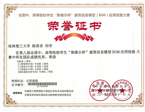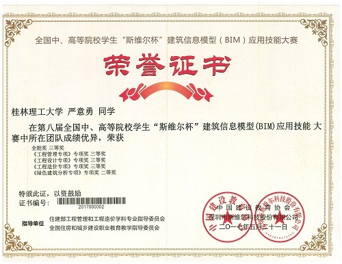 全国中、高等院校学生“斯维尔杯”建筑信息模型(BIM)应用技能大赛,由中国建设教育协会主办,深圳市斯维尔科技有限公司承办,得到了住建部工程管理和工程造价学科专业指导委员会、全国高职高专教育土建类专业教学指导委员会的大力支持。本大赛旨在通过斯维尔BIM系列软件的应用,实现高校建筑类专业之间的BIM协作,在增强学生实践与创新能力的同时,也提高了学生的团队协作能力。