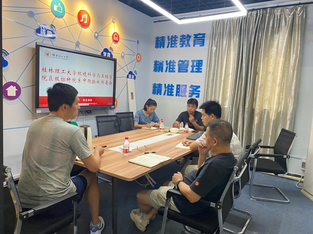 在雁山校区12408大数据工作室召开首批新时代广西党建工作标杆院系中期验收部署会,相关负责人参加会议,会议由学院党委书记姜子亮主持。