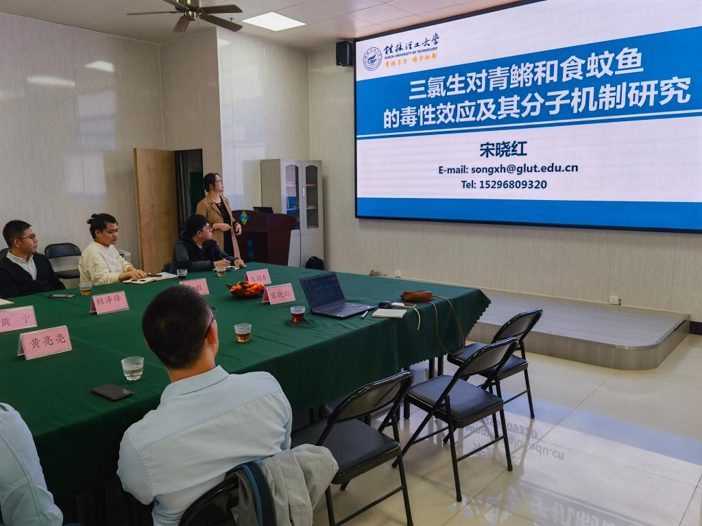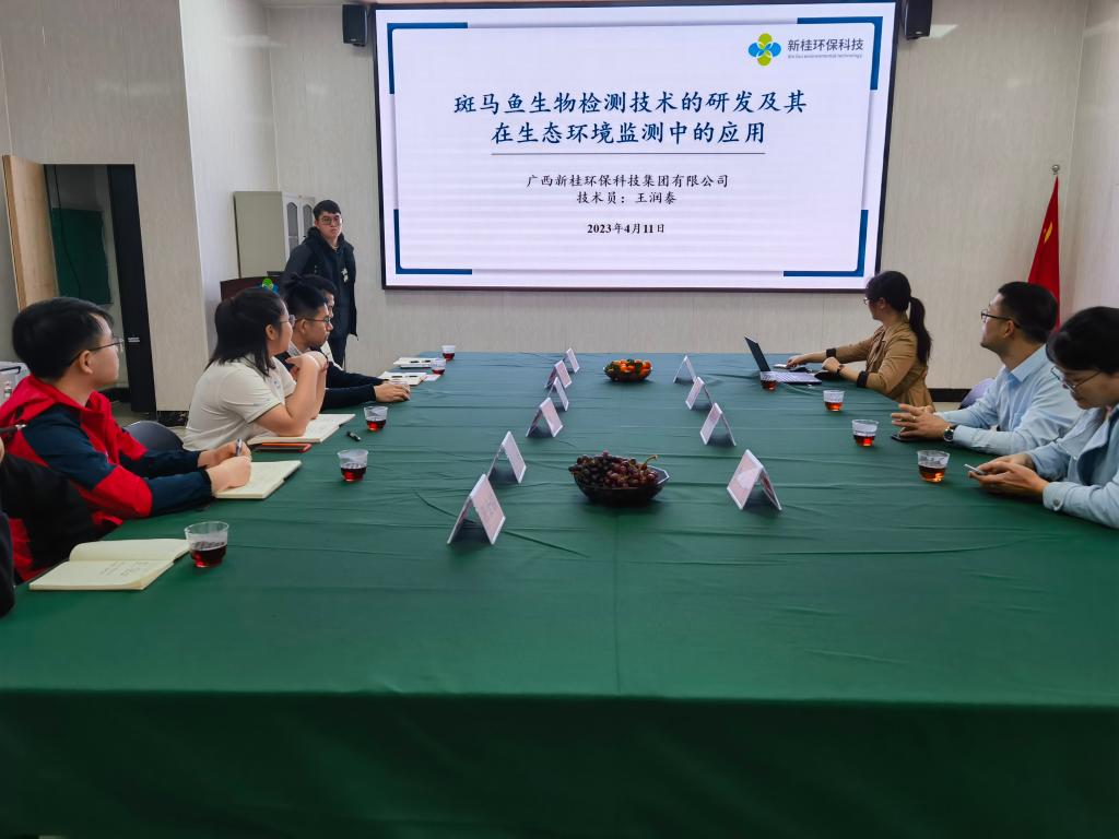 环境工程中心实验室副主任宋晓红高级实验师就模式鱼种对环境中污染物的应激方面做了相关的报告,与新桂环保科技集团进行了深层次的科研交流。